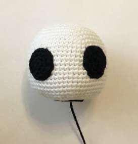 Glue the half beads for the eyes and embroider the eye whites with white yarn.