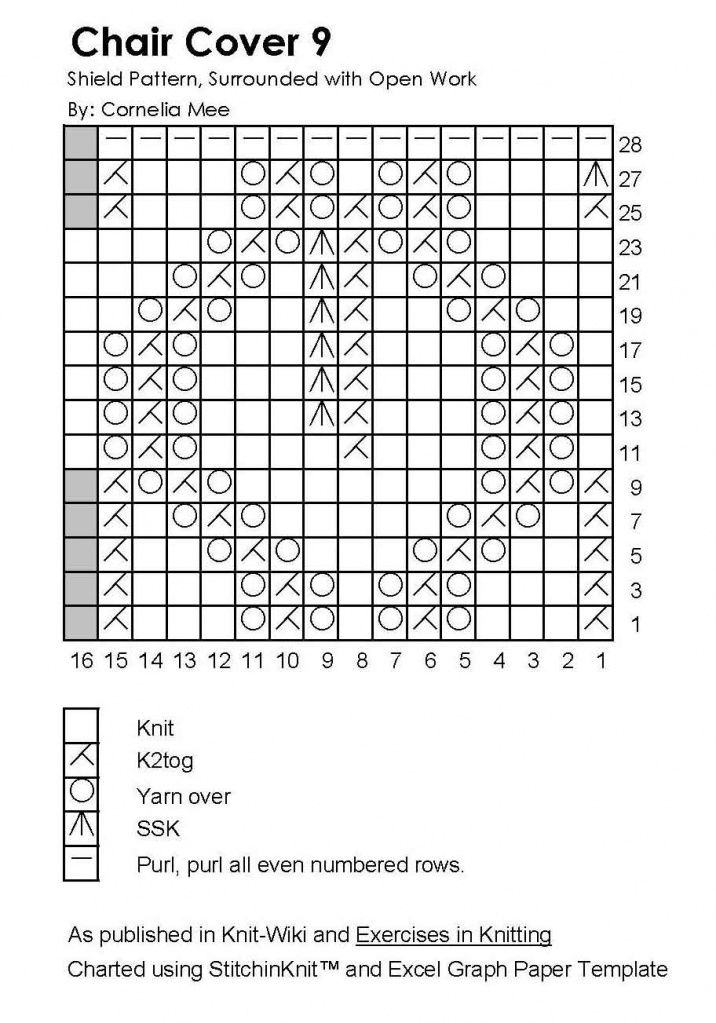 Pattern is worked over 15 stitches and 28 rows. Choose number of patterns, yarn, and needles to suit your project.