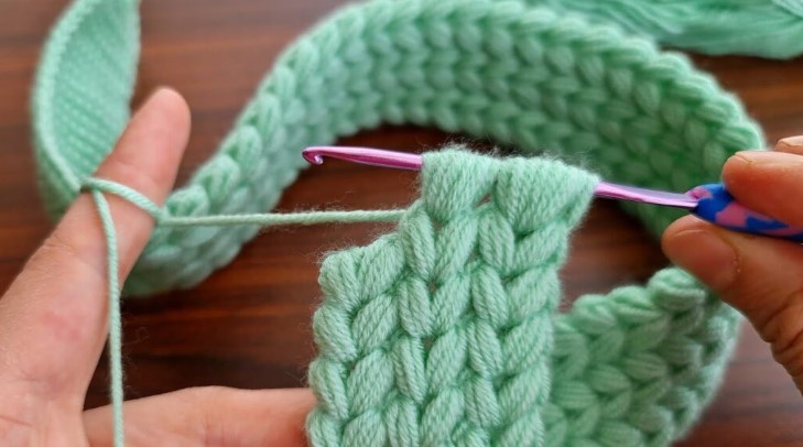 - If you want a thicker hairband, you can crochet two identical strips and sew them together.