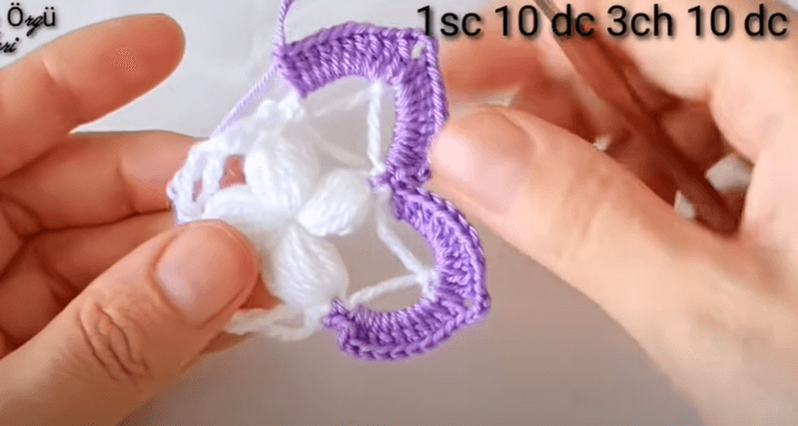 - Chain 3 (counts as a double crochet), work 4 double crochets (dc) into the same stitch.